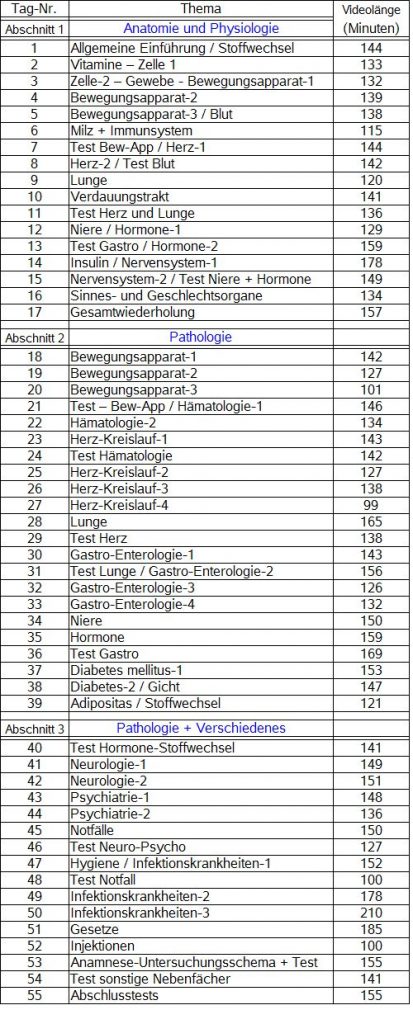 Tests und Videos der Tage 54 und 55 im Intensivkurs (Nebenfächer und Abschlusstest) sind identisch denen im Selbststudium (mit Videos) und im Prüfungsvorbereitungskurs.